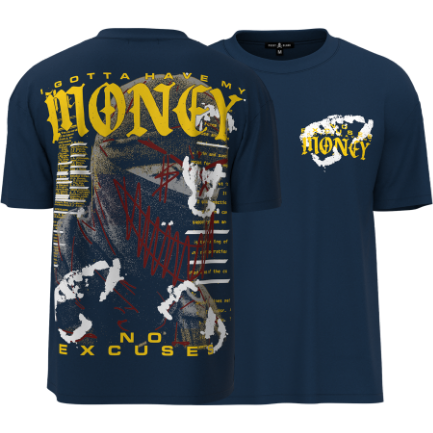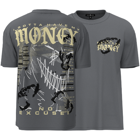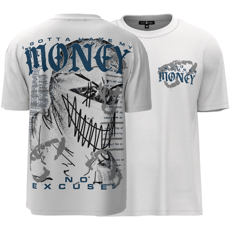 Own your grind with the No Excuses T-Shirt. Made from 100% cotton for a soft, breathable feel, this statement tee features a front embroidered chest graphic reading "No Excuses, I Gotta Have My Money" and a full back screen print with flocking texture that brings the design to life. The oversized back artwork includes bold lettering, a distressed graphic, and an edgy, rebellious vibe that sets this piece apart.